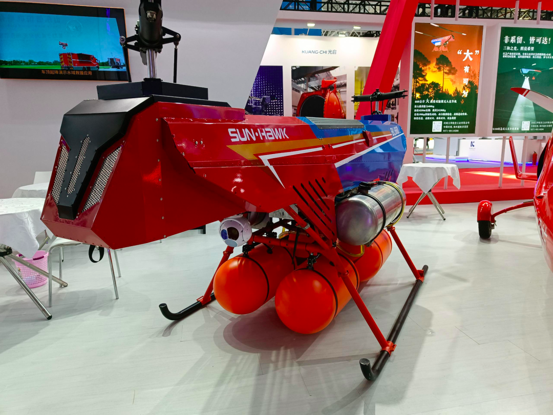 According to reports, different from the traditional helicopter configuration, this dual-rotor layout directly improves its load capacity, improves its work efficiency, increases its center of gravity, and has a stronger ability to resist crosswinds! This configuration helicopter is a single-engine oil-powered dual-rotor unmanned helicopter pioneered by Henan Sanhe Aviation in China. From the 50 kg load model in 2017, it has been steadily upgraded to this 400 kg load dual-rotor unmanned helicopter, with a payload of 400 kg, equipped with a turboshaft engine, strong and stable power, and excellent plateau performance. It has completed an altitude of 4200- 4700m performance test, four water-based fire extinguishing bombs are mounted on the exhibition machine, which can be used for prevention and control of forest fires. The maximum fire extinguishing area of ​​a single sortie is about 400 square meters. It supports fleet fire fighting. It has high-performance detection and target locking functions. Its load capacity can be used in scenarios such as emergency material delivery and emergency rescue. It can replace helicopters in special scenarios to realize unmanned aviation. It is a new type of drone.