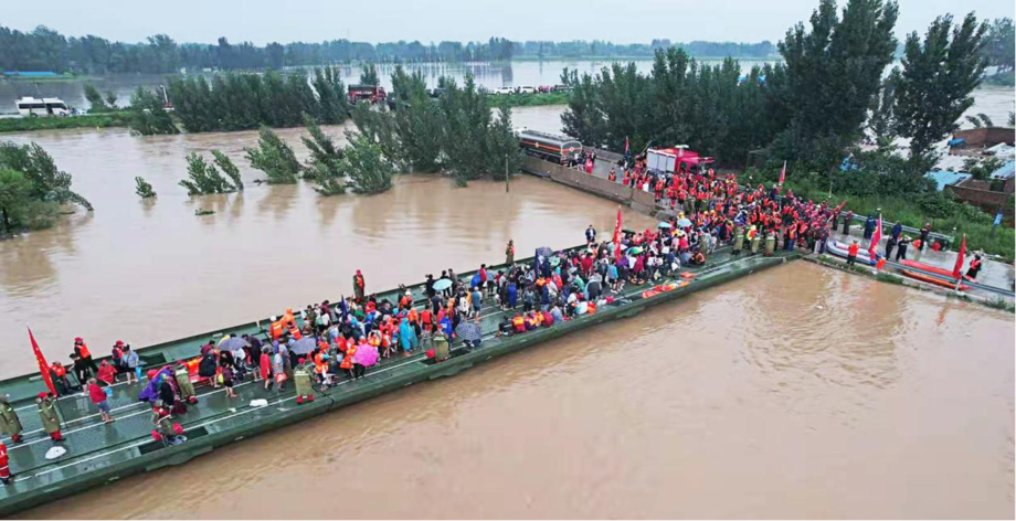 △In 2021, the CSSC emergency power pontoon bridge participated in the heavy rain rescue in Henan
