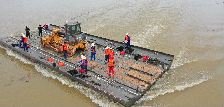 △In 2020, CSSC emergency power pontoon bridge participated in the closure of Poyang Lake breach in Jiangxi