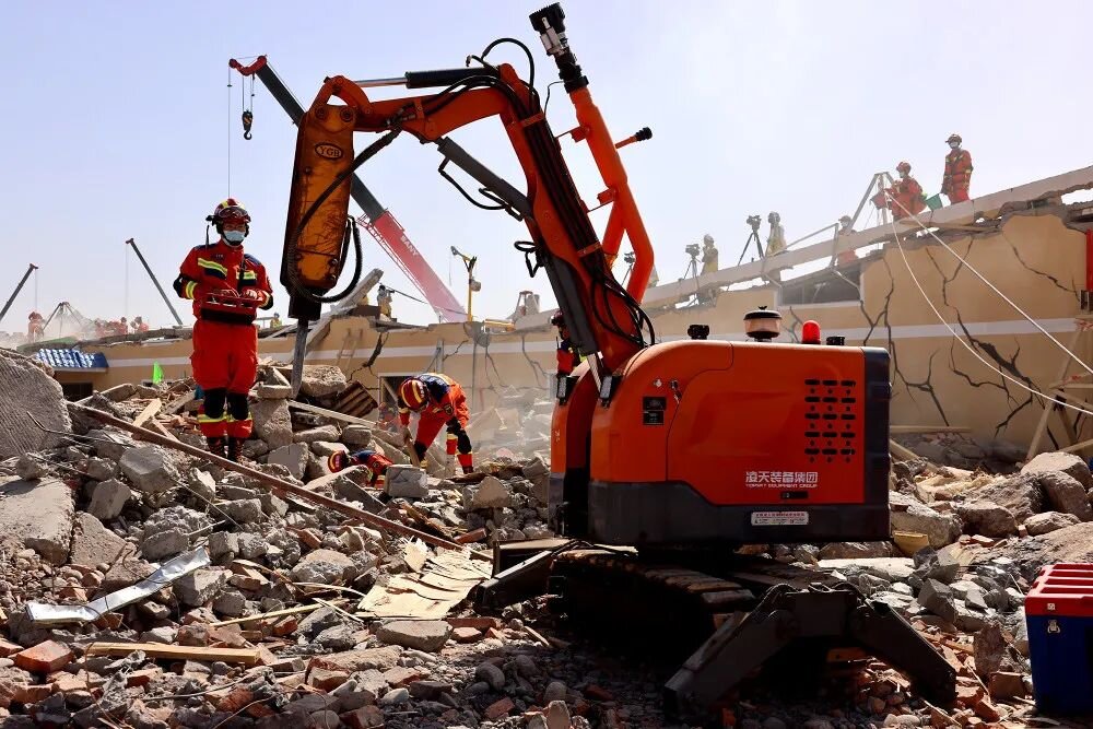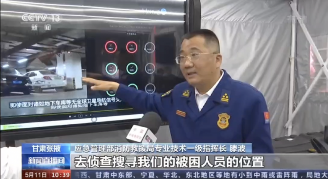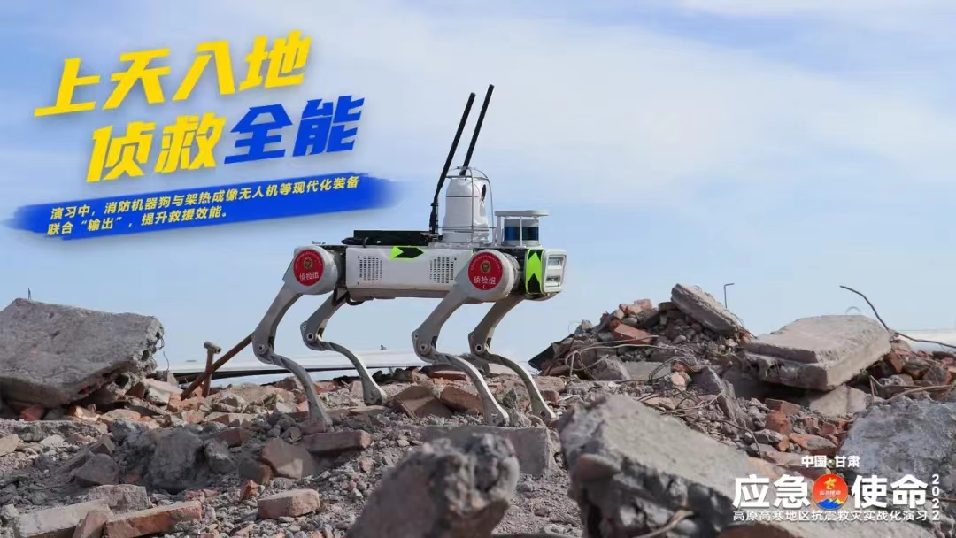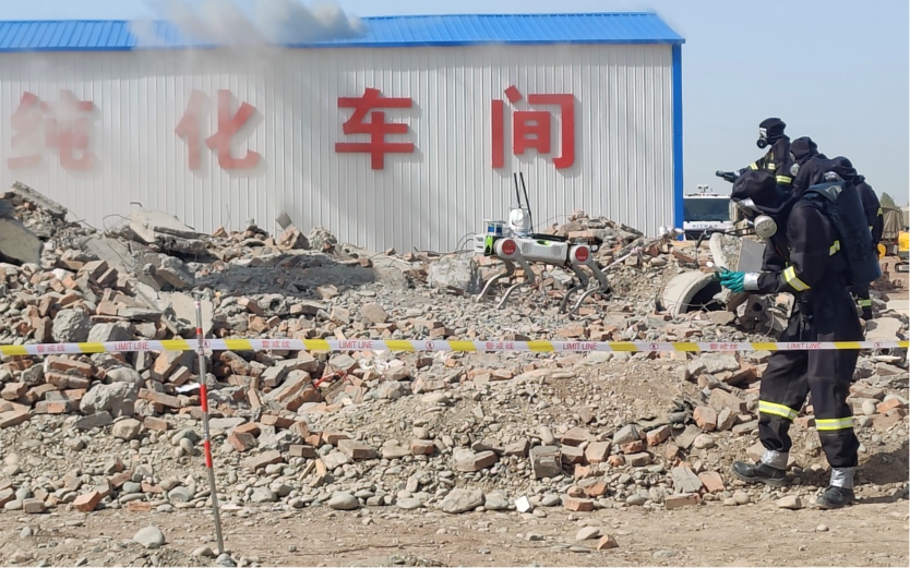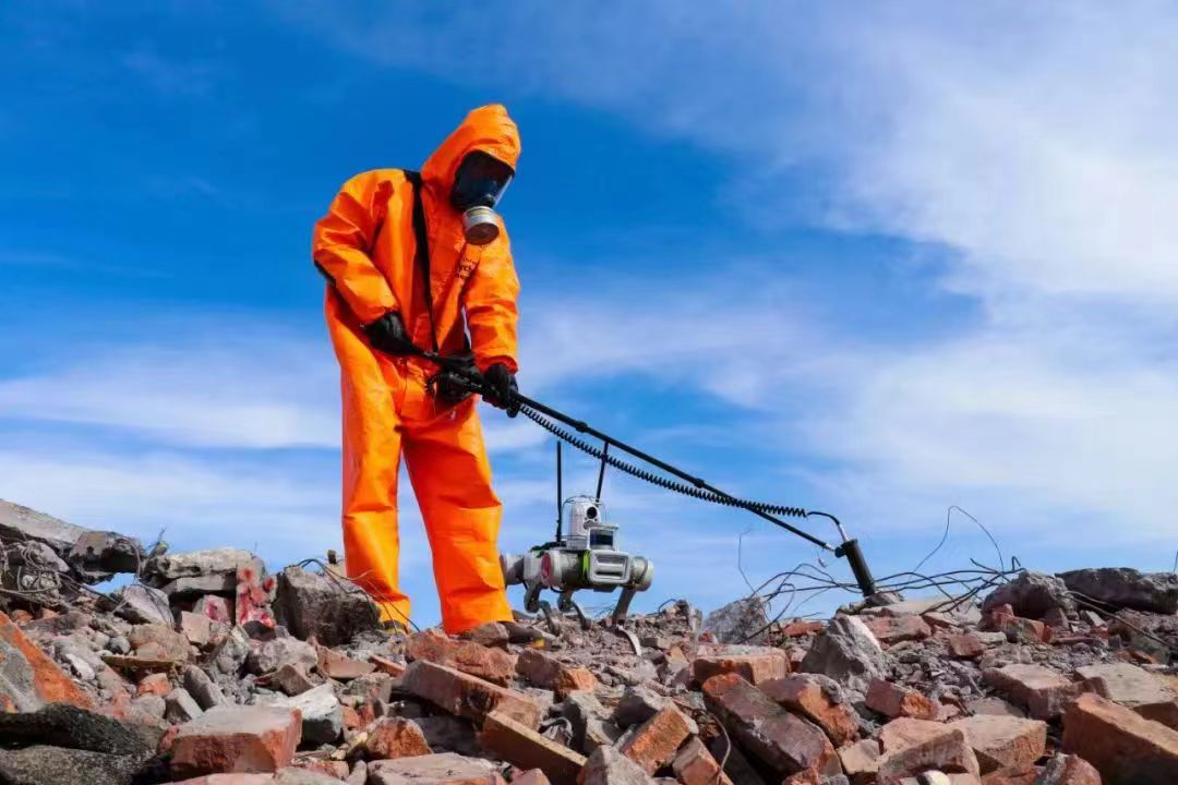 The Jueying X20 equipped with a fire detection application module cooperates with rescuers to search for buried people